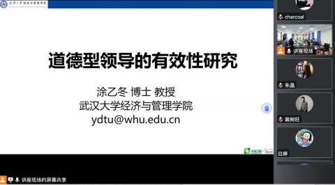 此次学术沙龙采用线下线上共同举行的方式,与会师生与线上观众同涂乙冬教授针对道德型领导的研究现状和理论发展等问题进行了深入、热切的交流,现场氛围非常活跃。本次学术沙龙活动得到师生广泛关注,学术宣传效果非常理想。