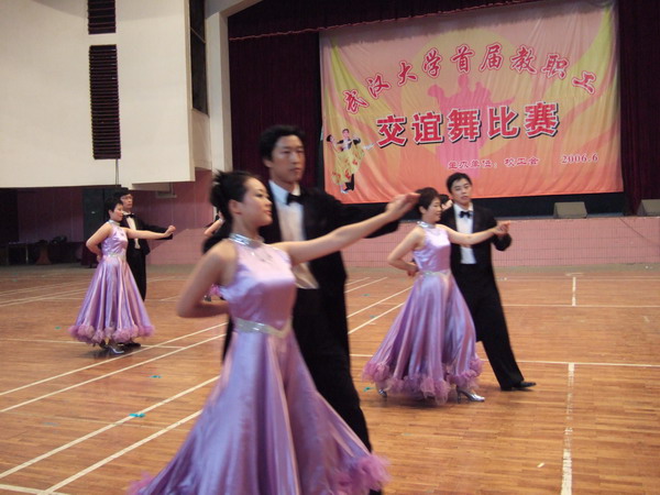 2006年6月27日由校工会组织的“武汉大学经济与管理学院庆祝中国共产党建党85周年教职工交谊舞比赛”在信息学部大学生活动中心隆重举行。我院选派了8对选手参加团体舞比赛,他们克服了天气炎热、排练时间短等诸多困难,在学院领导的热情鼓励和教练的悉心指导下取得了团体舞二等奖的优秀成绩。(院工会供稿)