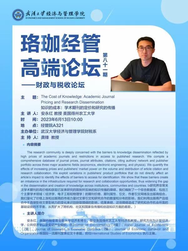 珞珈经管高端论坛第八十一期——财政与税收论坛