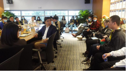 参访的第二站是武汉大学经济与管理学院1979级经济系校友毛振华创办的中诚信集团,毛振华董事长及多位武汉大学经济与管理学院校友高管参与了接待。集团总裁助理李征东校友首先带领师生参观了中诚信集团的办公大楼,介绍了中诚信集团“立足中国、以诚为本、信达天下”的企业理念,以及在关注教育事业发展、支持新冠疫情防控等方面的企业责任担当。在极富美学设计的公司办公大楼前,同学们纷纷打卡留念。座谈会上,毛振华师兄做了热情洋溢的致辞,介绍了他在武汉大学经济与管理学院的求学经历,鼓励自强创业班的同学们要珍惜校园的学习时光,注重专业知识的学习,多读书、读好书,不断提高创新创业综合素养;寄语同学们要敢想会创,在实践中提升才干。执行副总裁孔令强向同学们全面介绍了中诚信集团的信用评级业务,大家边听边认真做笔记,现场提问不断。集团副总裁李骥校友和同学们亲切交流,寄语同学们要树立家国情怀,敢于担当,用实干热情报效国家。同学们满载收获,伴着夜色,留恋不舍的结束了第一天的参访。