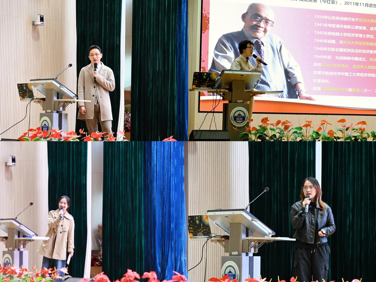 在主题讲座环节,来自武汉大学经济与管理学院的三名研究生党支部书记以接力式讲授方式,为同学们带来一堂既贴近生活又关联国家发展的经济学启蒙课。高翔宇同志以“武汉长江大桥”为引入,引导学生从熟悉的城市地标理解国家“五年规划”制度。罗光锐同志用“早餐摊博弈”的短片引发讨论,在轻松氛围中讲解合作共赢、纳什均衡等基本经济学思想。他通过讲述张培刚教授的事迹,引导学生把学习与责任、个人理想与国家愿景结合起来。王锐霞同志以“五年规划中的风险意识”为起点,将国家的理性布局延伸到“人生规划”。